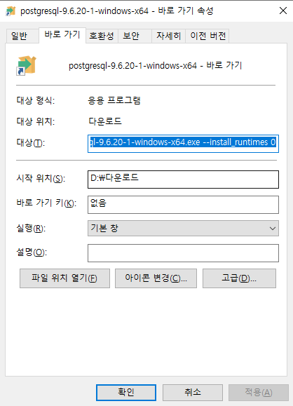 설치 파일 바로가기를 만들고